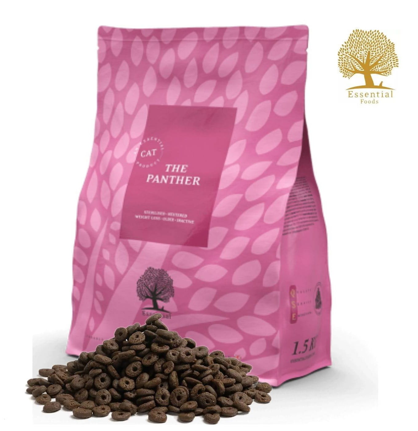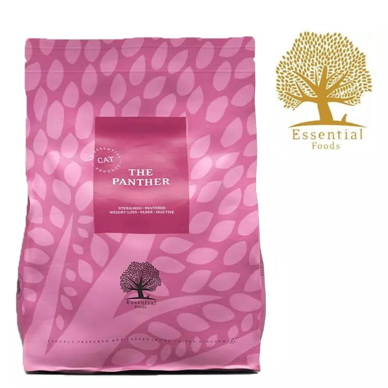 ESSENTIAL the PANTHER to kompletna, bezzbożowa karma dla kotów, dostosowana do trzech unikalnych stylów życia i etapów. Idealna dla kotów sterylizowanych/kastrowanych, kotów żyjących w domu/nieaktywnych/redukujących wagę oraz starszych/seniorów (7+ lat).