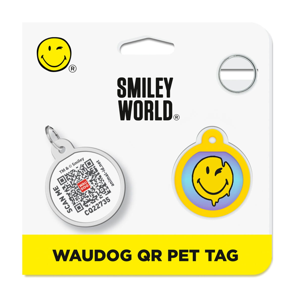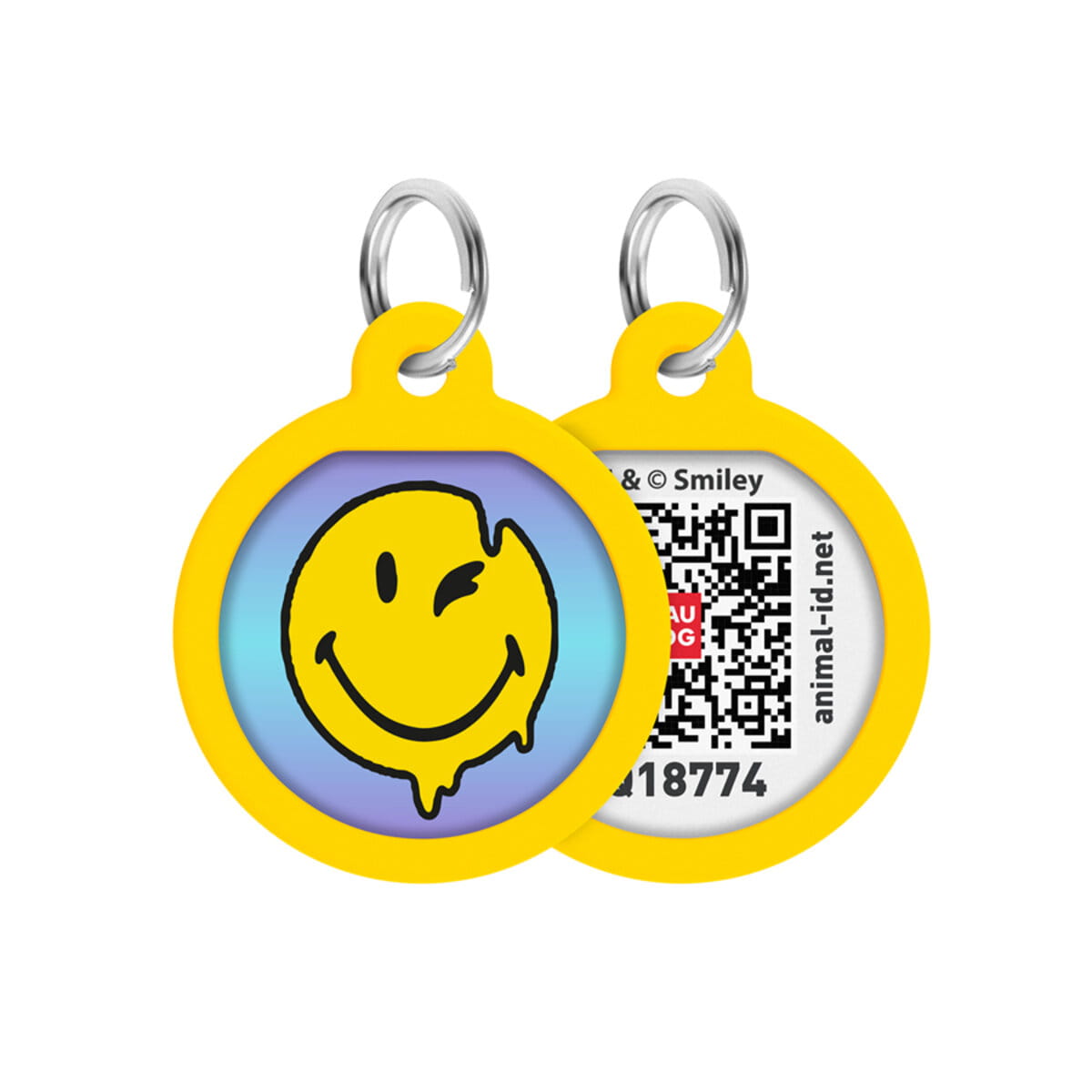SMILEY WORLD® - Smart ID zawieszka, adresówka dla zwierząt z QR-paszportem to coś więcej niż tylko identyfikator. Super modny design SMILEY WORLD® nie pozostawi Cię obojętnym. Wzór "Blue Smileys". Certyfikowana przez licencjodawcę, potwierdzone oryginalną naklejką TM& © The Smiley Company.