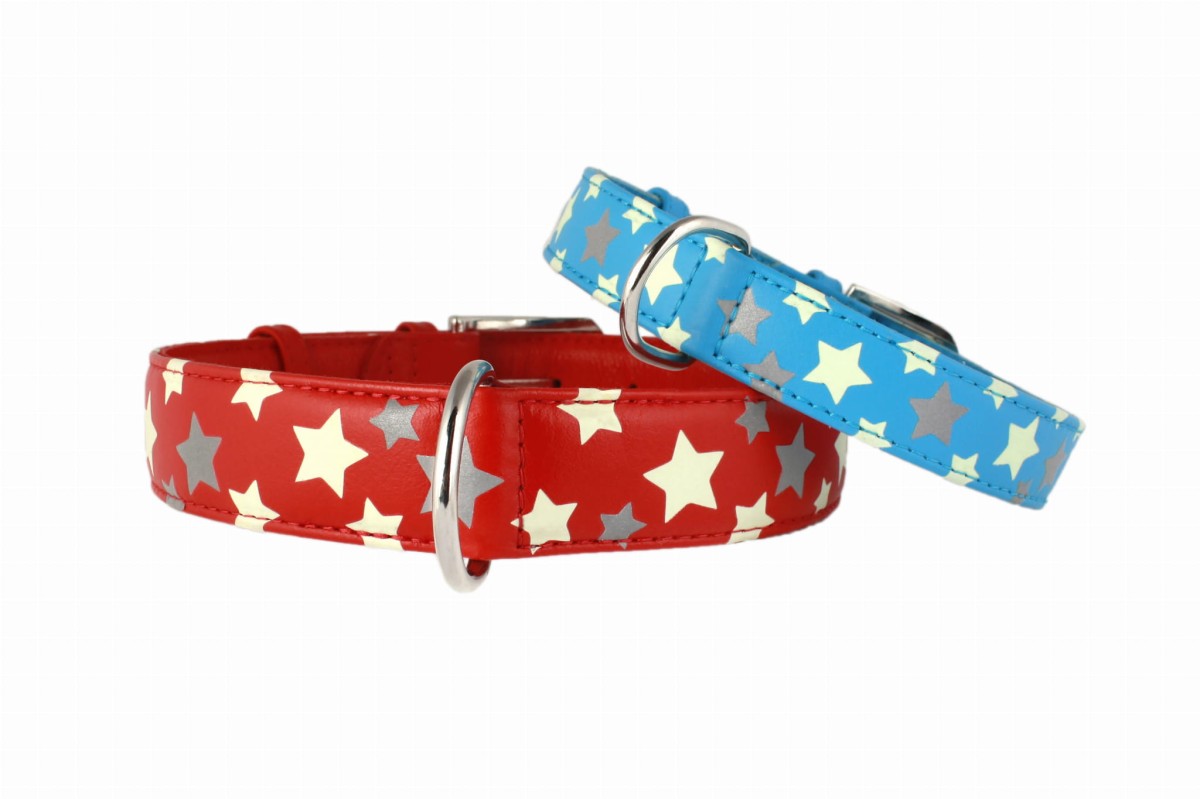 CoLLaR Glamour to linia obroży i smyczy ze skóry,obustronnie wykończona skórą licową, szytą (nie klejoną) i barwioną w pięknych, żywych i pastelowych kolorach, z elementami odblaskowymi i "świecącymi" w kształcie gwiazdek - piękny i zachwycajacy efekt wizualny. Tym sposobem możemy ożywić kolorami świat naszych pupili. Od teraz smycz i obroża wcale nie musi być szara, bura... W linii CoLLaR Glamour można dobrać w tym samym kolorze smycz( wkrótce ). Cała linia jest wykańczana ręcznie, co stawia ten produkt w klasie najwyższej jakości.