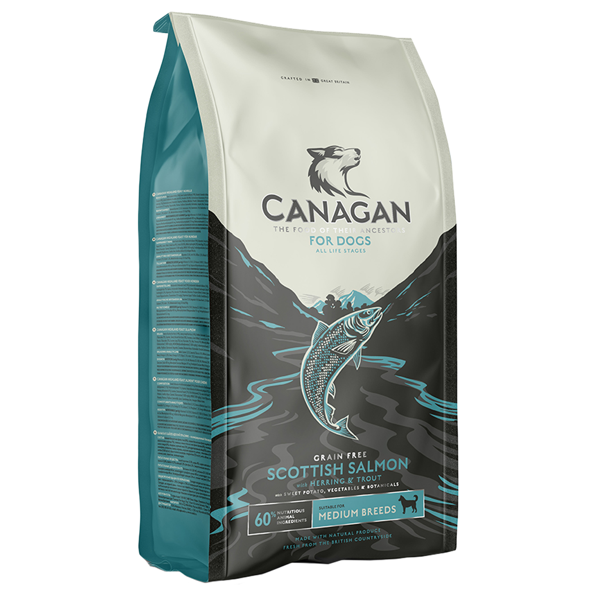 Rasy średnie – jej głównym składnikiem jest łosoś oraz dodatkowo śledź, pstrąg i zestaw białych ryb co stanowi aż 53,5% składu karmy, kolejną cechą jest brak zbóż.Nasz świeży Łosoś Szkocki bez ości jest produkowany w standardzie identycznym ludzkiemu pożywieniu, ta wspaniała karma jest dodatkowo ulepszona poprzez dodanie ziół i minerałów. Idealna karma dla psów z alergiami pokarmowymi. Nie zawiera żadnych dodatków z innych zwierząt nawet tłuszczu. Dodatkowo brak zbóż sprawiają, że nawet najbardziej wrażliwe psy otrzymają karmę bezpieczną, zdrową i w pełni odpowiadającą naturalnemu zapotrzebowaniu na pożywienie.