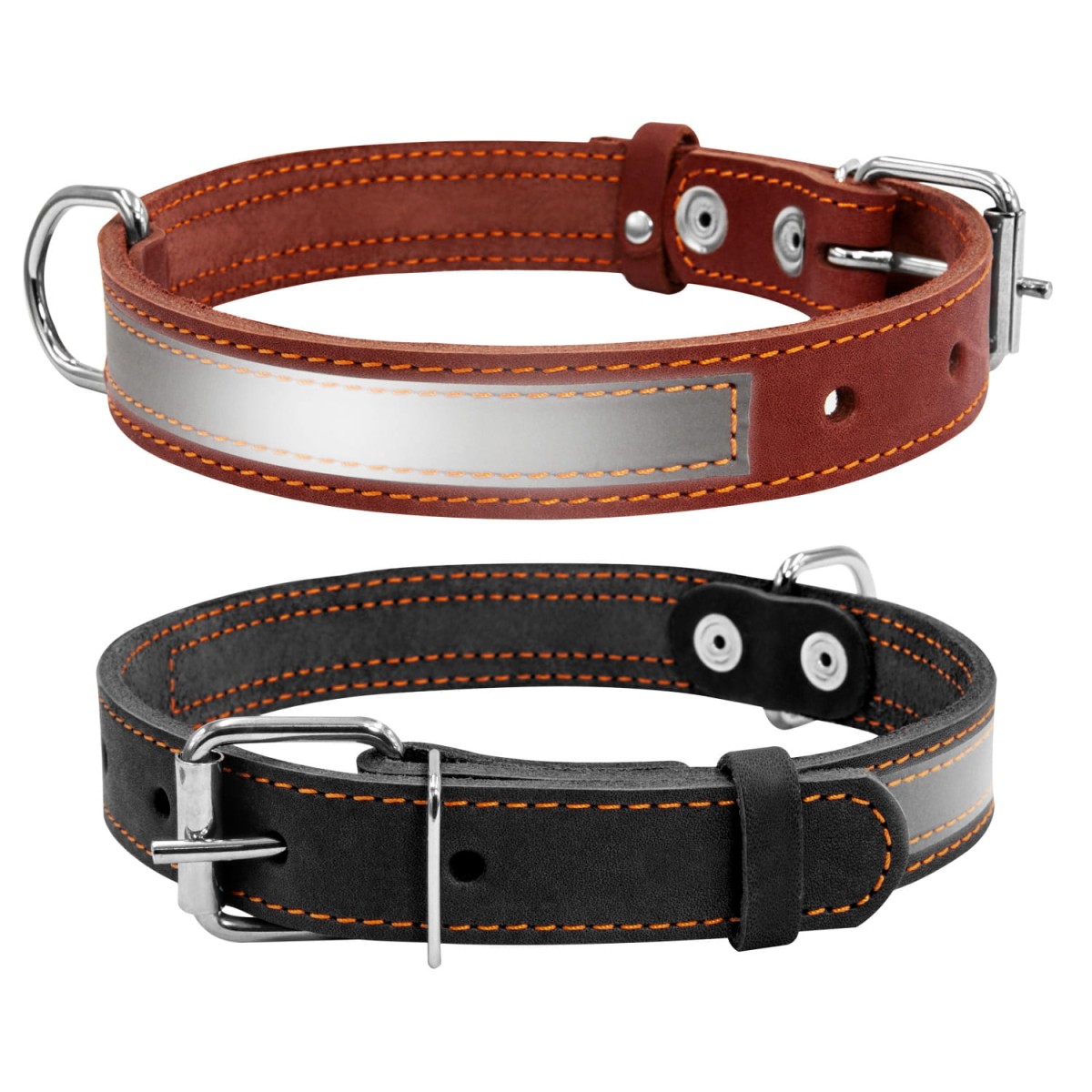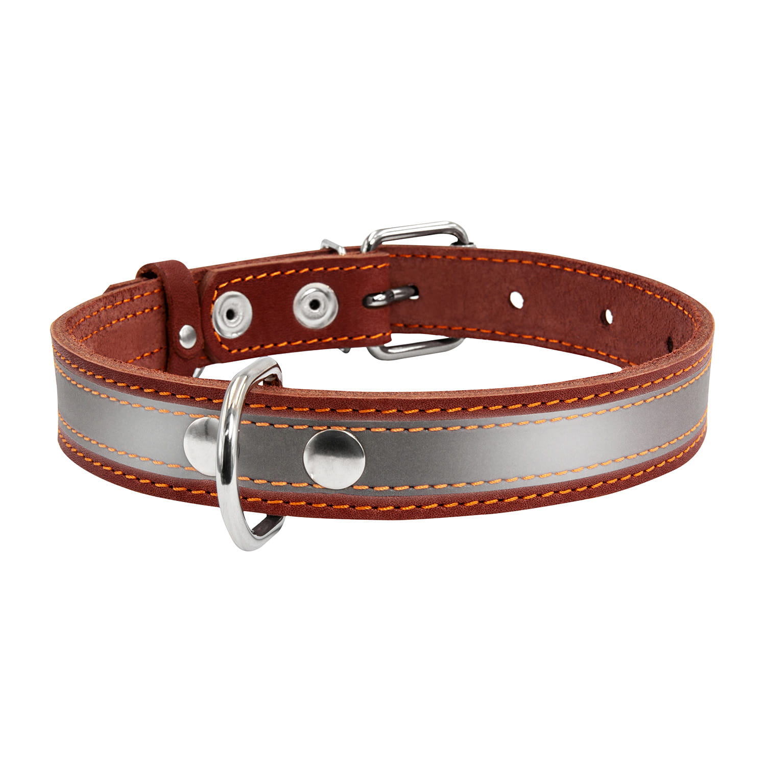 Klasyczna skórzana obroża dla psa z pasem odblaskowym