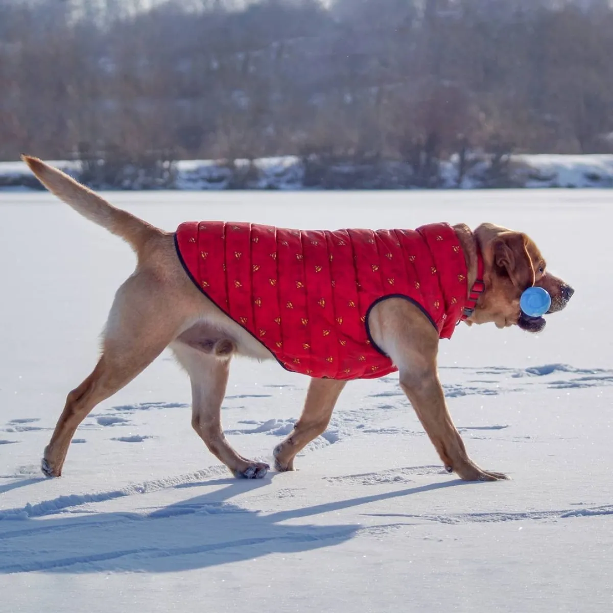 Wodoodporna i wypełniona izolacją syntetyczną umieszczoną wewnątrz ultra-lekkiej tkaniny poliestrowej, która jest odporna na światło i wilgoć. Lycra obszyta na krawędziach zapobiega przed przeciągami i ucieczce ciepłego powietrza z wnętrza kamizelki. Stojący kołnierz i dłuższy tył zapewniają lepszą ochronę. Ze względu na przemyślany projekt , aby ubrać psa, potrzebujemy na to tylko kilku sekund. - zapinana na napy ( dla regulacji dwa rzędy zatrzasków )