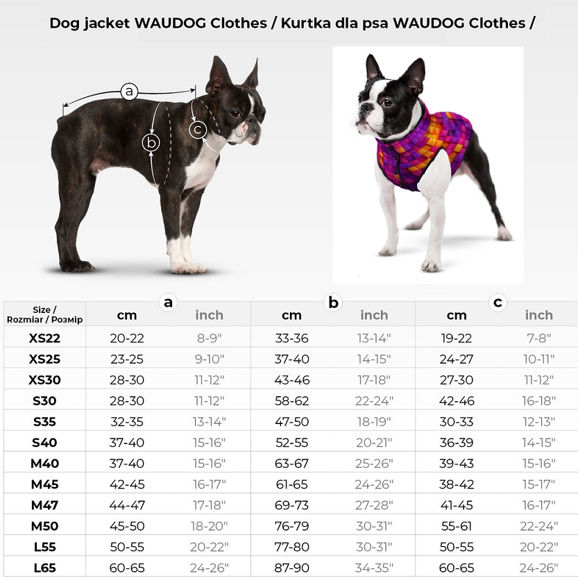 Clothes czyli lekka a ciepła kurtka dla psa. Odzież która zapewnia doskonałe połączenie stylu i funkcjonalności. Pies będzie wyglądać modnie jednocześnie utrzymując ciepło. Idealny dla psów, które lubimy wyróżniać z tłumu. Wzór "Klocki L"