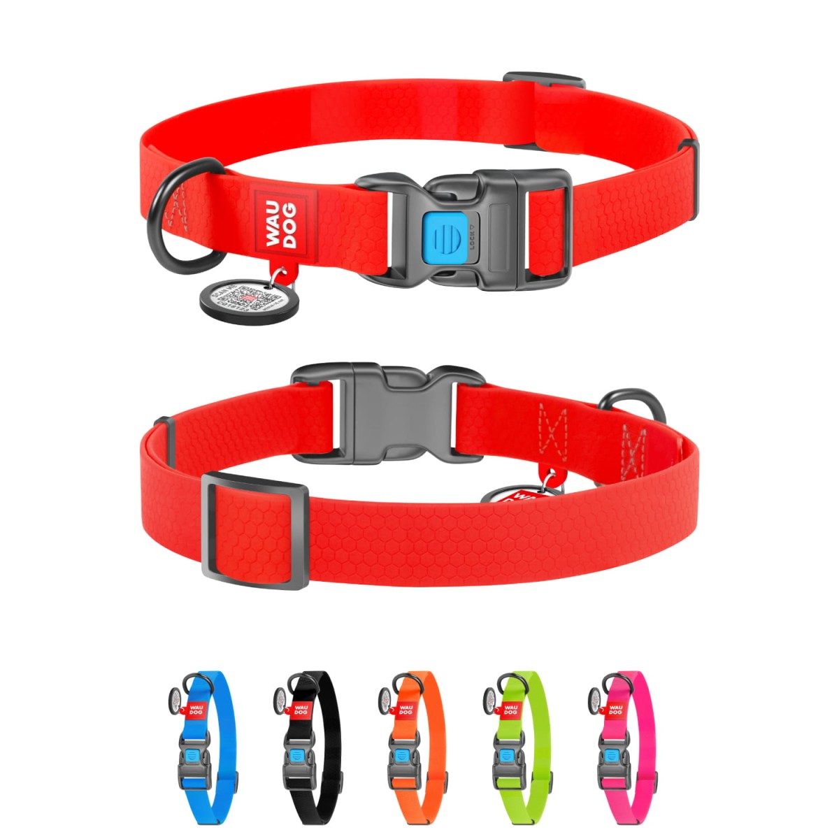 Do tych obrozy polecamy smycze WAUDOG WATERPROOF w tych samych kolorach w 3 długościach 122cm, 183cm i 305cm- kliknij tutaj