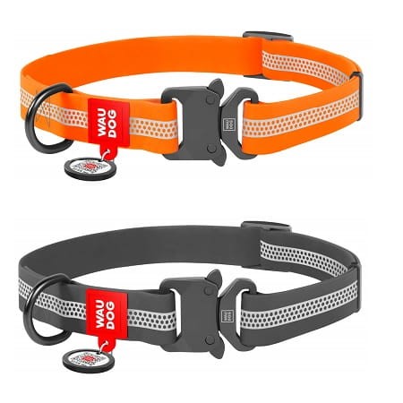 Ze względu na połączenie wysokiej jakości materiałów, mocne i stylowe okucia, wykonane z tytanowo-szarego, lekkiego metalu, smycze i obroże tej serii są wyjątkowo funkcjonalne. Seria WATERPROOF Reflective jest proponowana w 2 kolorach. Na klamrze tej można wygrawerować informacje o psie. Dodatkowo dodajemy do każdej obroży identyfikator QR, czyli swoisty dowód osobisty psa - QR pet tag