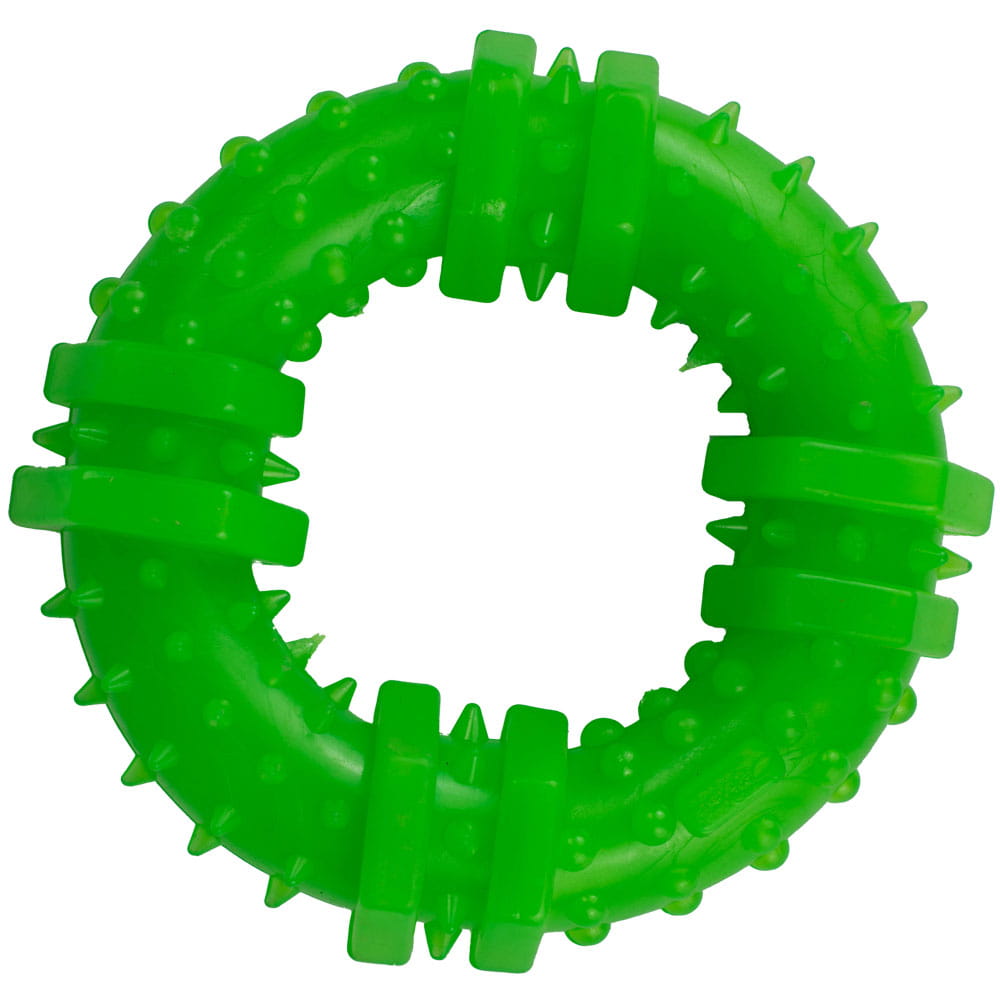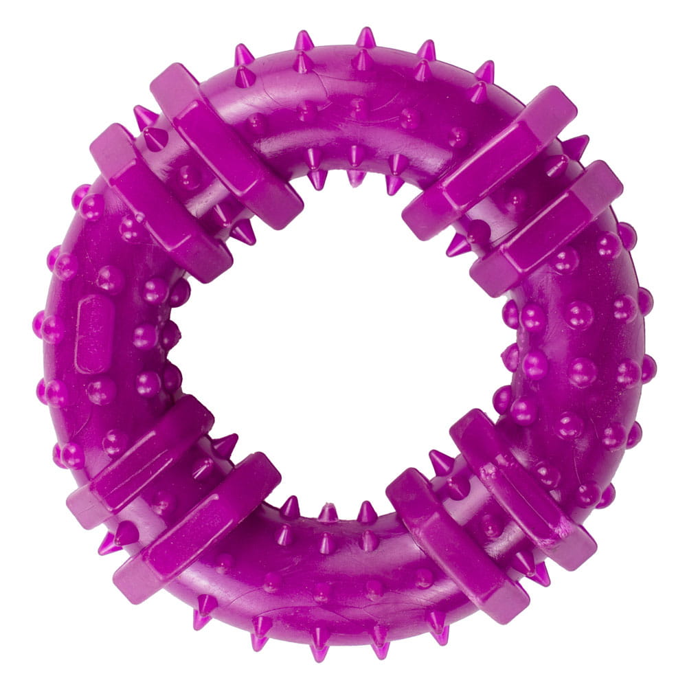 Ringo to jest polecane zarówno dla dorosłych psów, jak i szczeniąt, ze względu na delikatne kolce masujące dziąsła. Wypustki dodatkowo wspomagają higienę jamy ustnej. Zabawka jest łatwa do chwycenia w pysk, dzięki czemu jest bezpieczna dla Twojego psa.