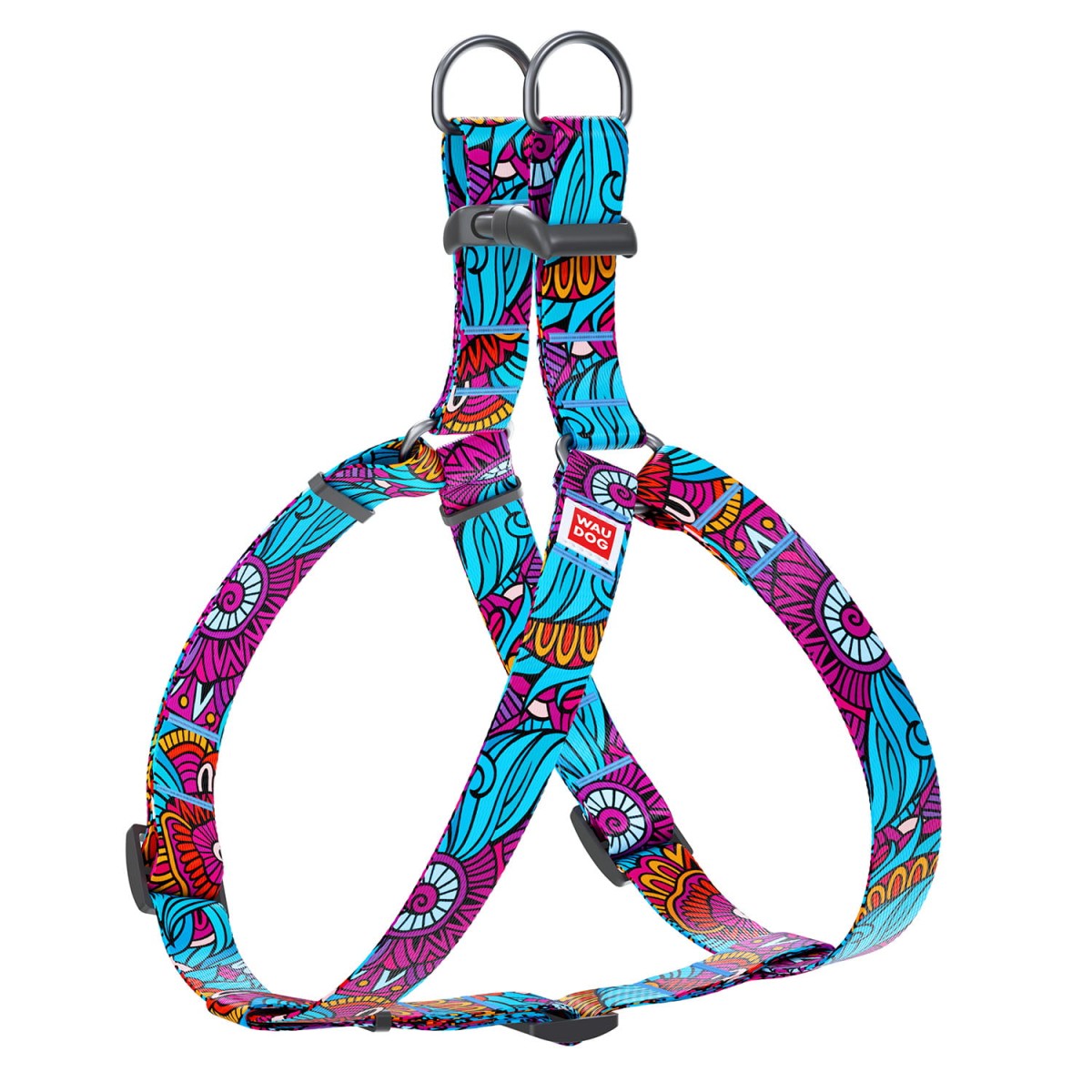 WauDog NYLON - Wyjątkowo wytrzymałe spacerowe (walk-in, step-in) , designerskie szelki dla psa w 3 wymiarach z klamrą plastikową typu fastex z zamkiem uniemożliwiającym samoistne wypięcie.