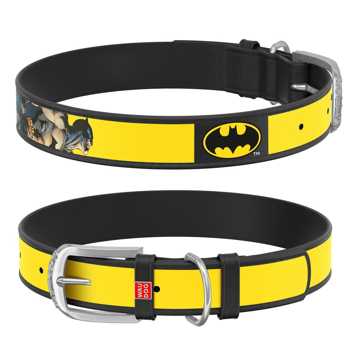 WauDog DESIGN DC- obroża skórzana czarna - "Batman2"