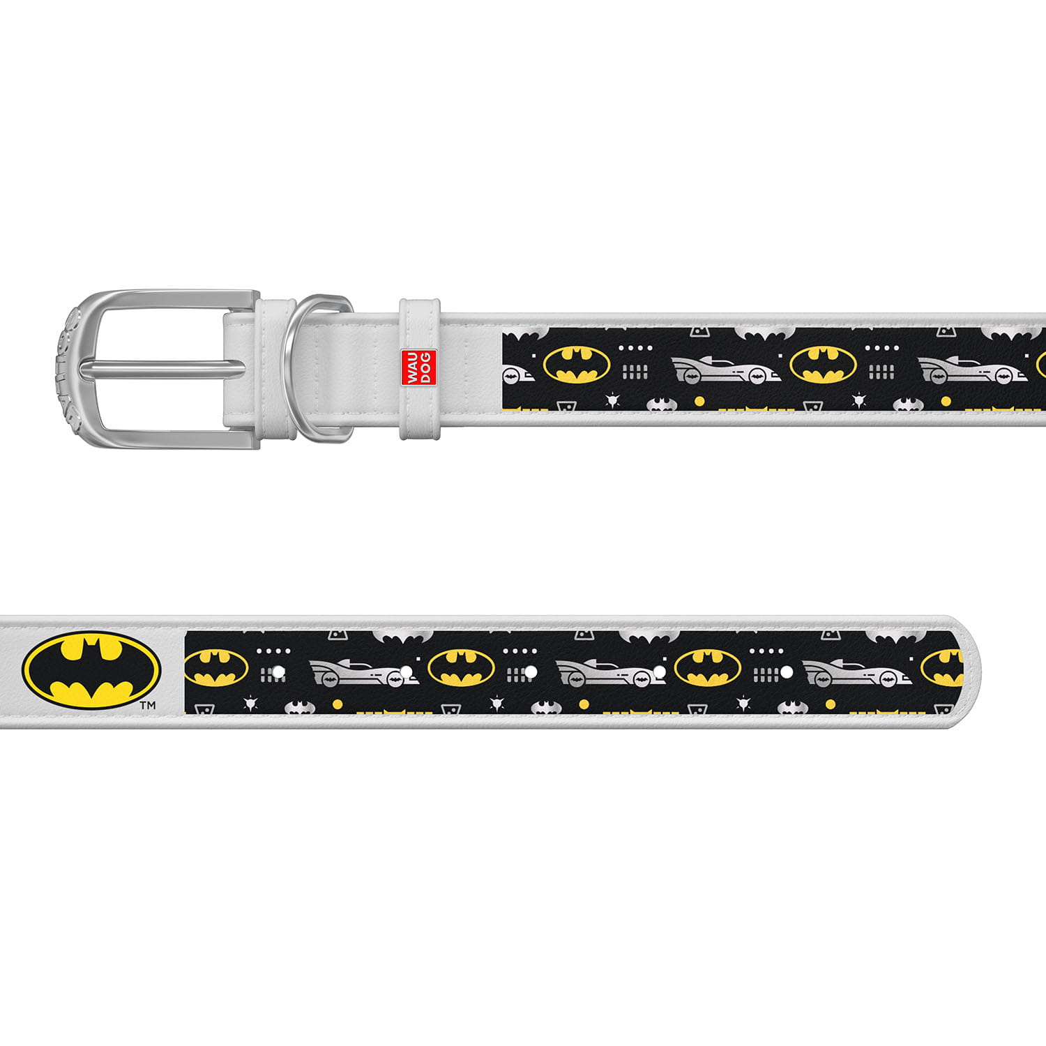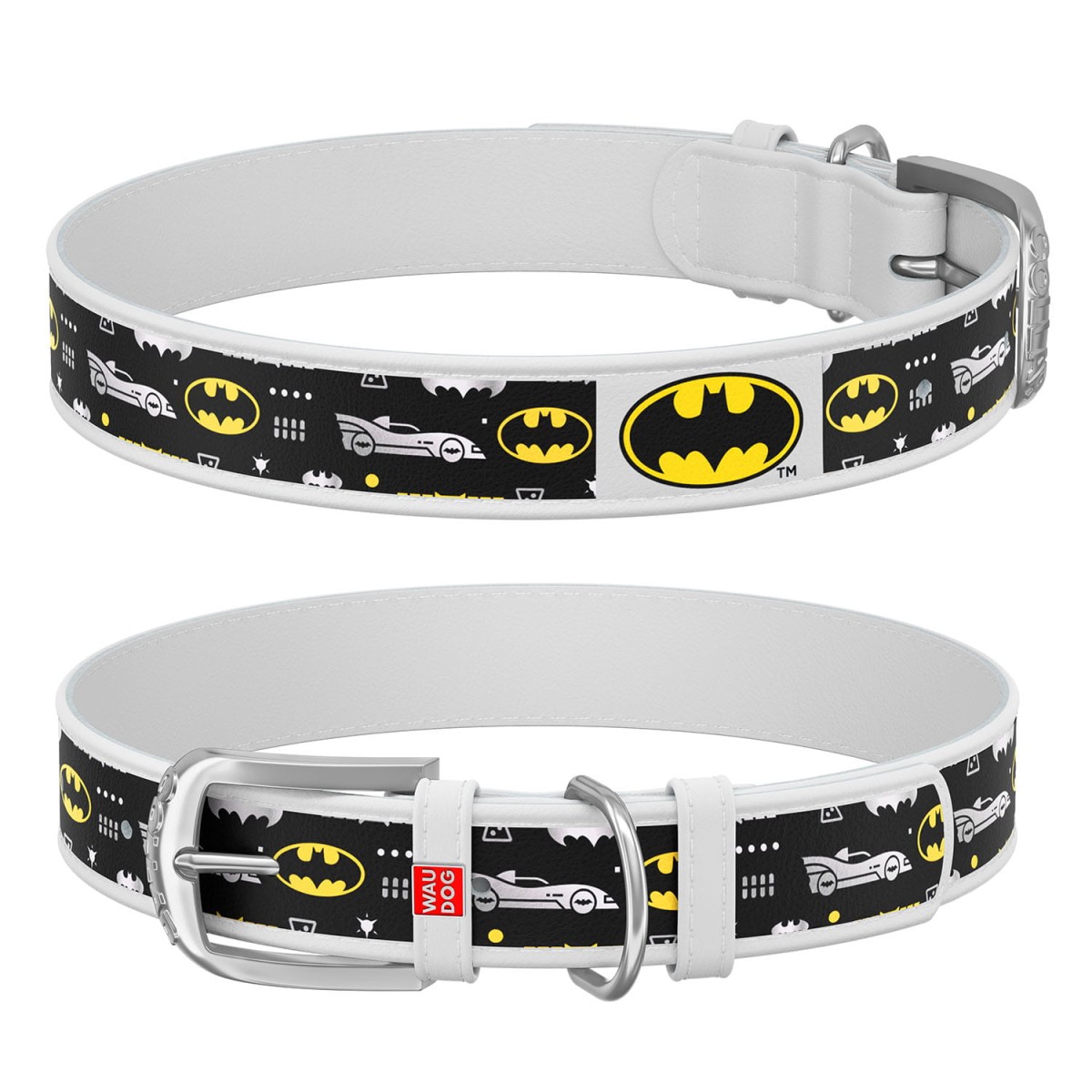 WauDog DESIGN DC- skórzana obroża biała - "Batman3"