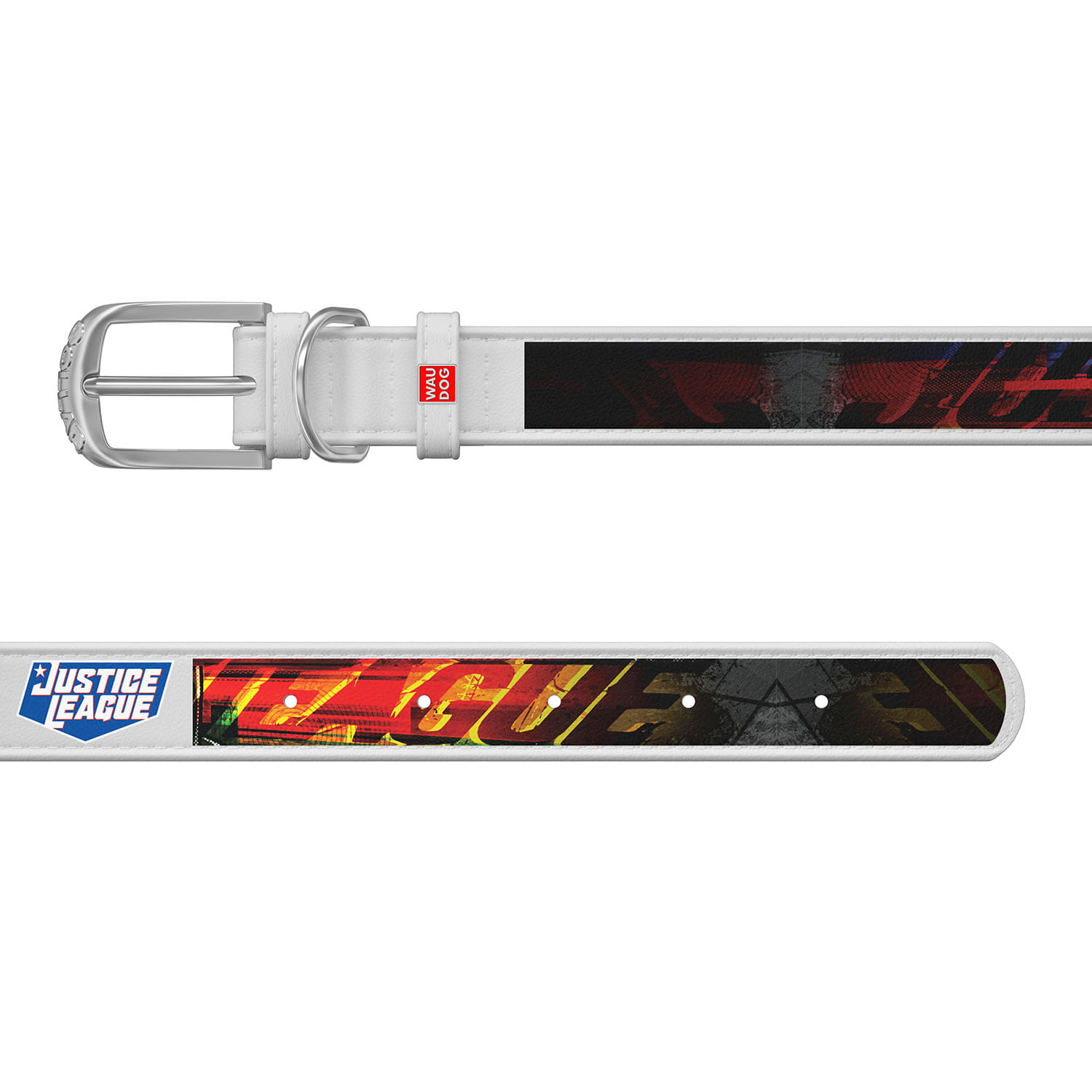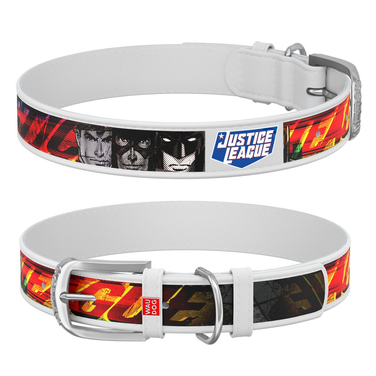 WauDog DESIGN DC - skórzana obroża biała - "Justice League"