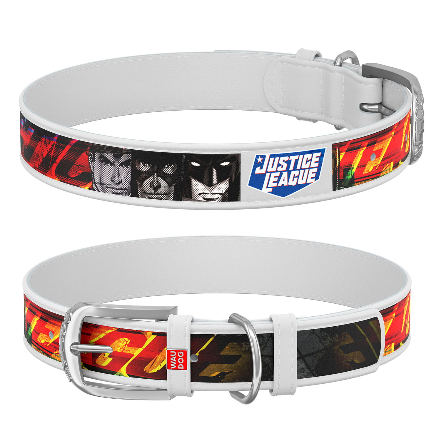 Obroża skórzana z Superbohaterem "Justice League" - odporny, innowacyjny druk odporny na warunki atmosferyczne.