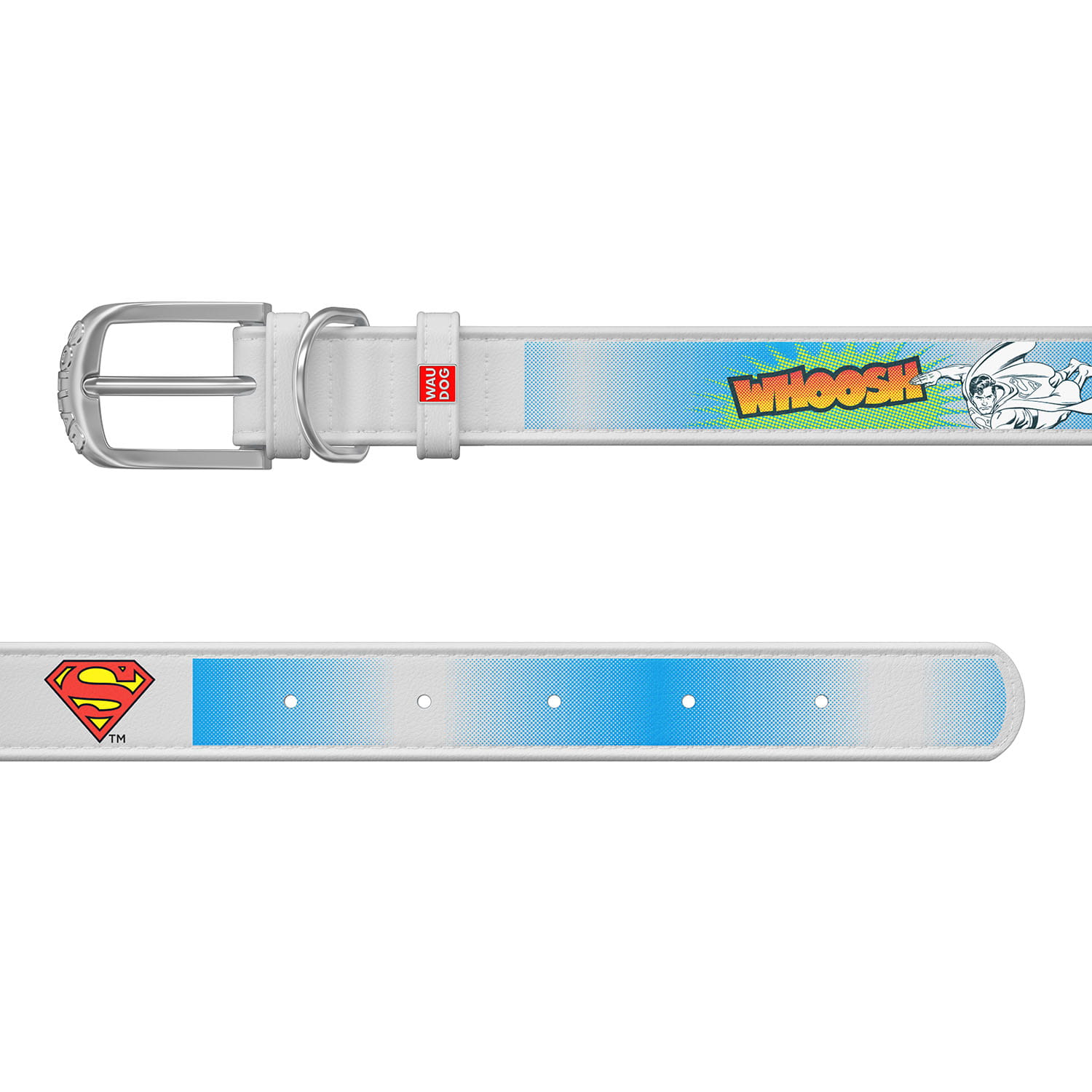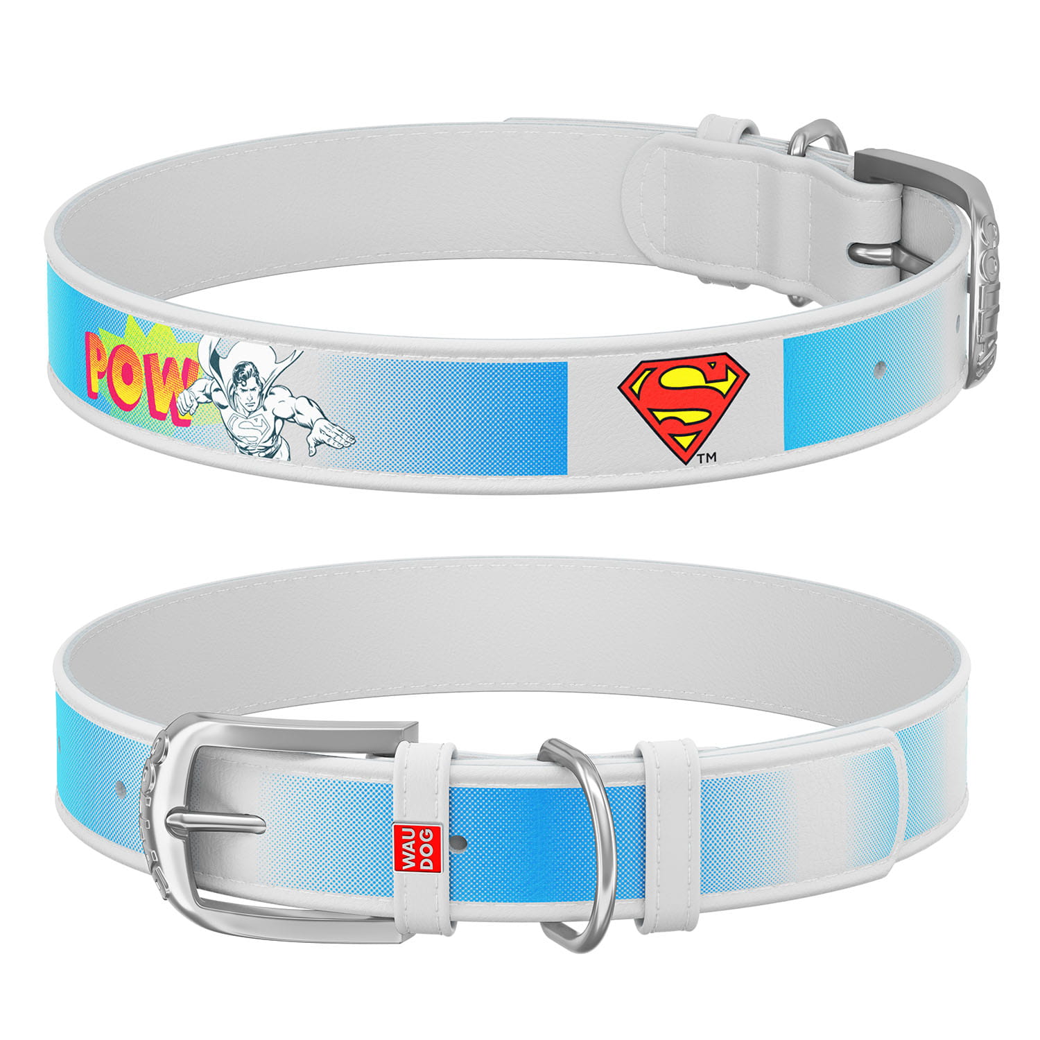 WauDog DESIGN DC - skórzana obroża biała - "Superman2"