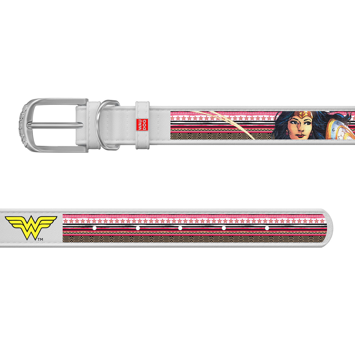 WauDog DESIGN DC - skórzana obroża biała - "Wonder Woman"