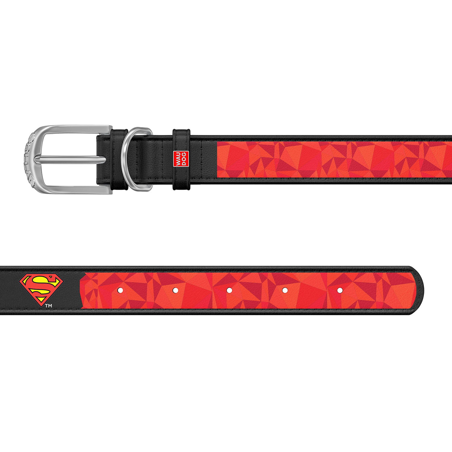 WauDog DESIGN DC - skórzana obroża czarna - "Superman1"