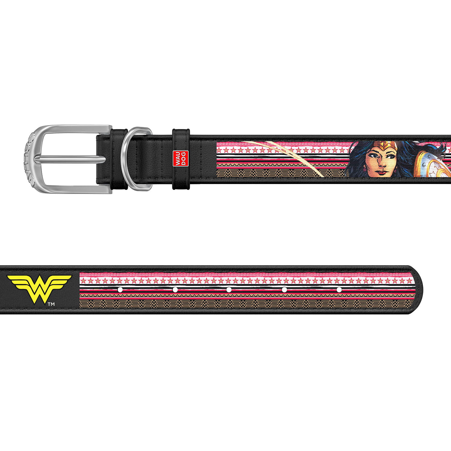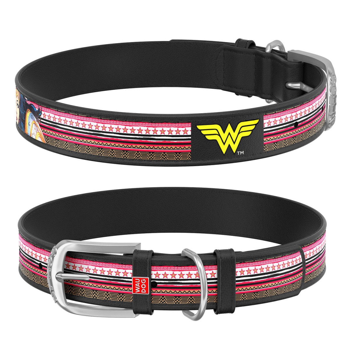 Obroża skórzana z Superbohaterem "Wonder Woman" - odporny, innowacyjny druk odporny na warunki atmosferyczne.