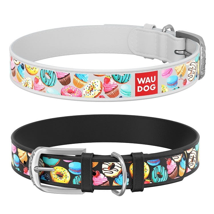 WauDog DESIGN WoW - obroża skórzana - Donuts