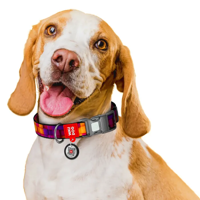 WauDog NYLON - obroża "3D Cubes" + Smart ID