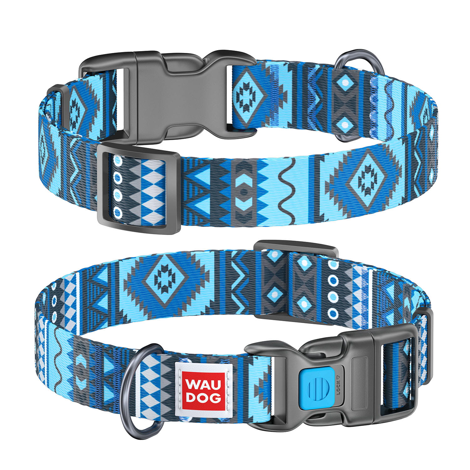 WauDog NYLON - obroża "Etno blue" + Smart ID