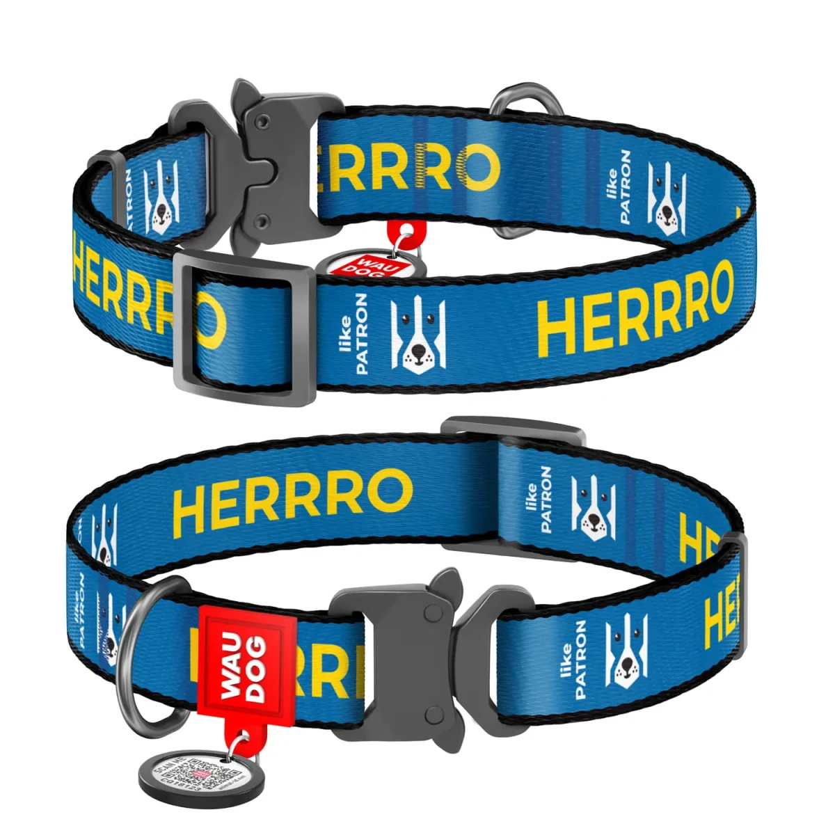 WauDog NYLON - obroża "Patron" Herrro + Smart ID - zapięcie typu "cobra"