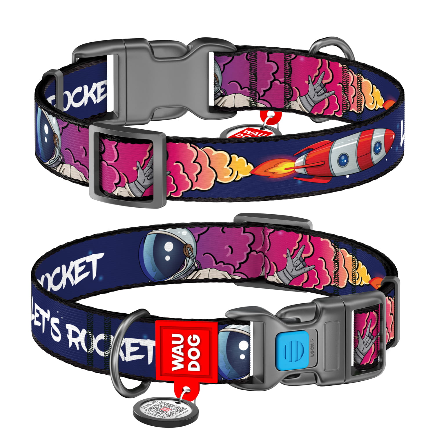 WauDog NYLON - obroża "Space Rocket" + Smart ID