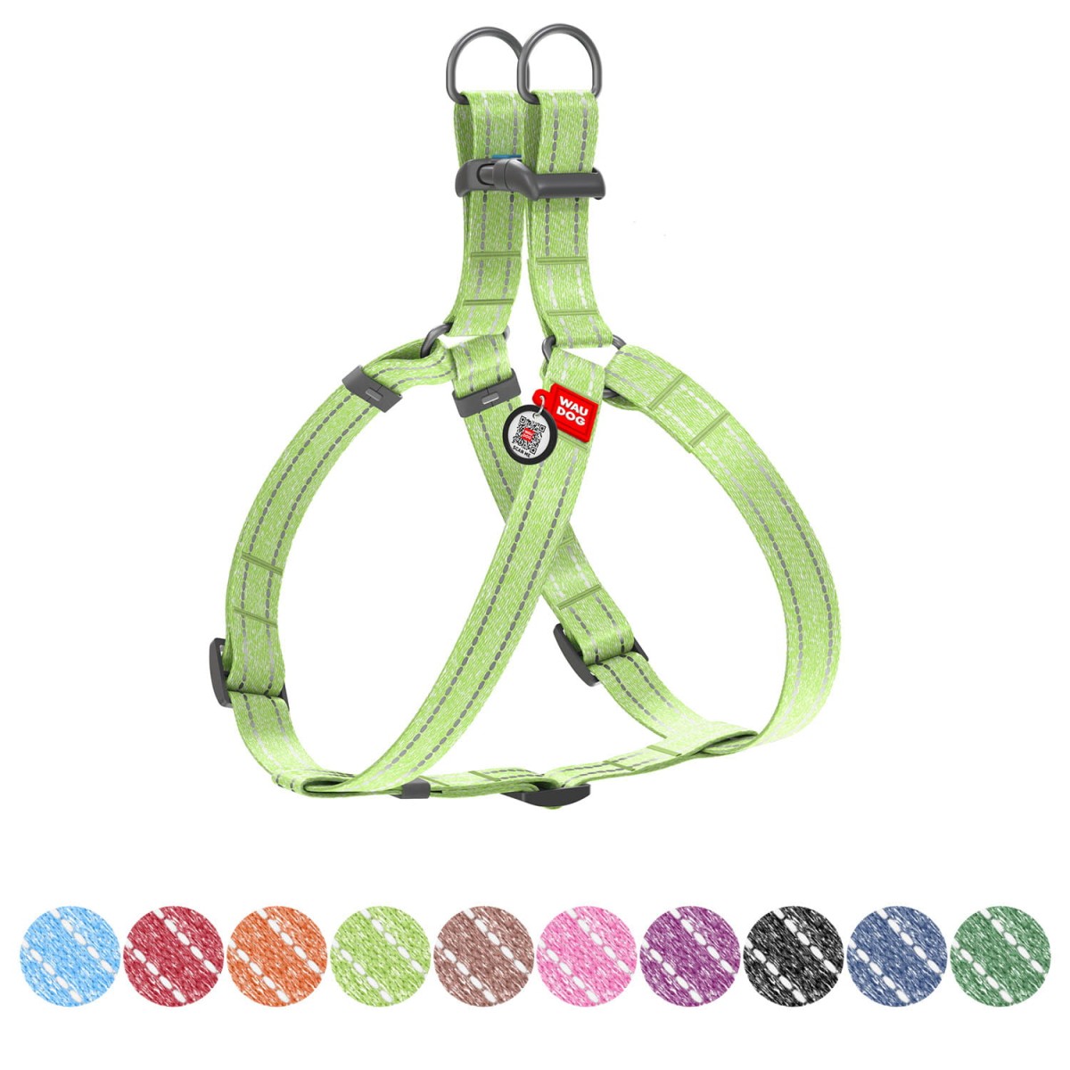 Odblaskowe wstawki i inteligentna przywieszka identyfikacyjna z paszportem QR , zapewniają dodatkowe bezpieczeństwo.
