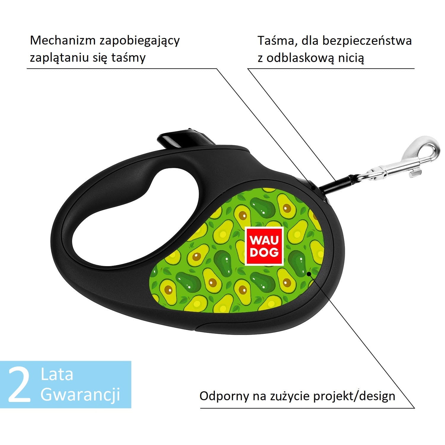 WauDog - automatyczna smycz 5m i 3m -Avocado