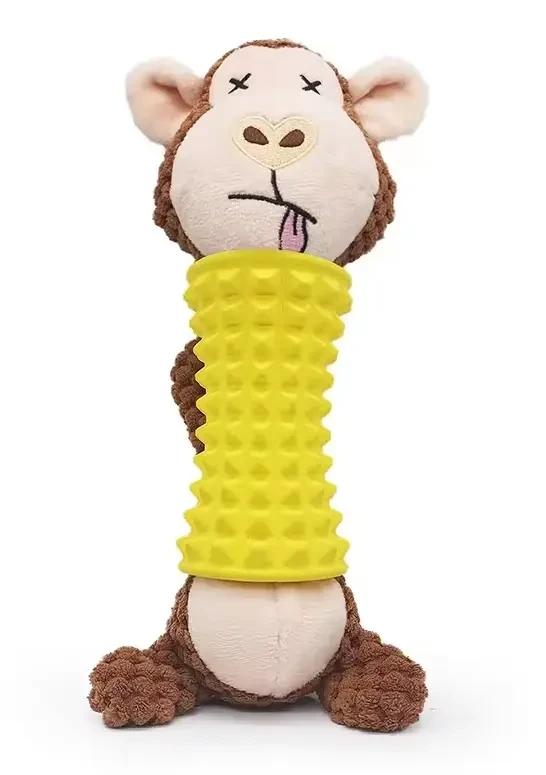 - małpa posiada piszczałkę, która zachęca psa do zabawy (cicha )